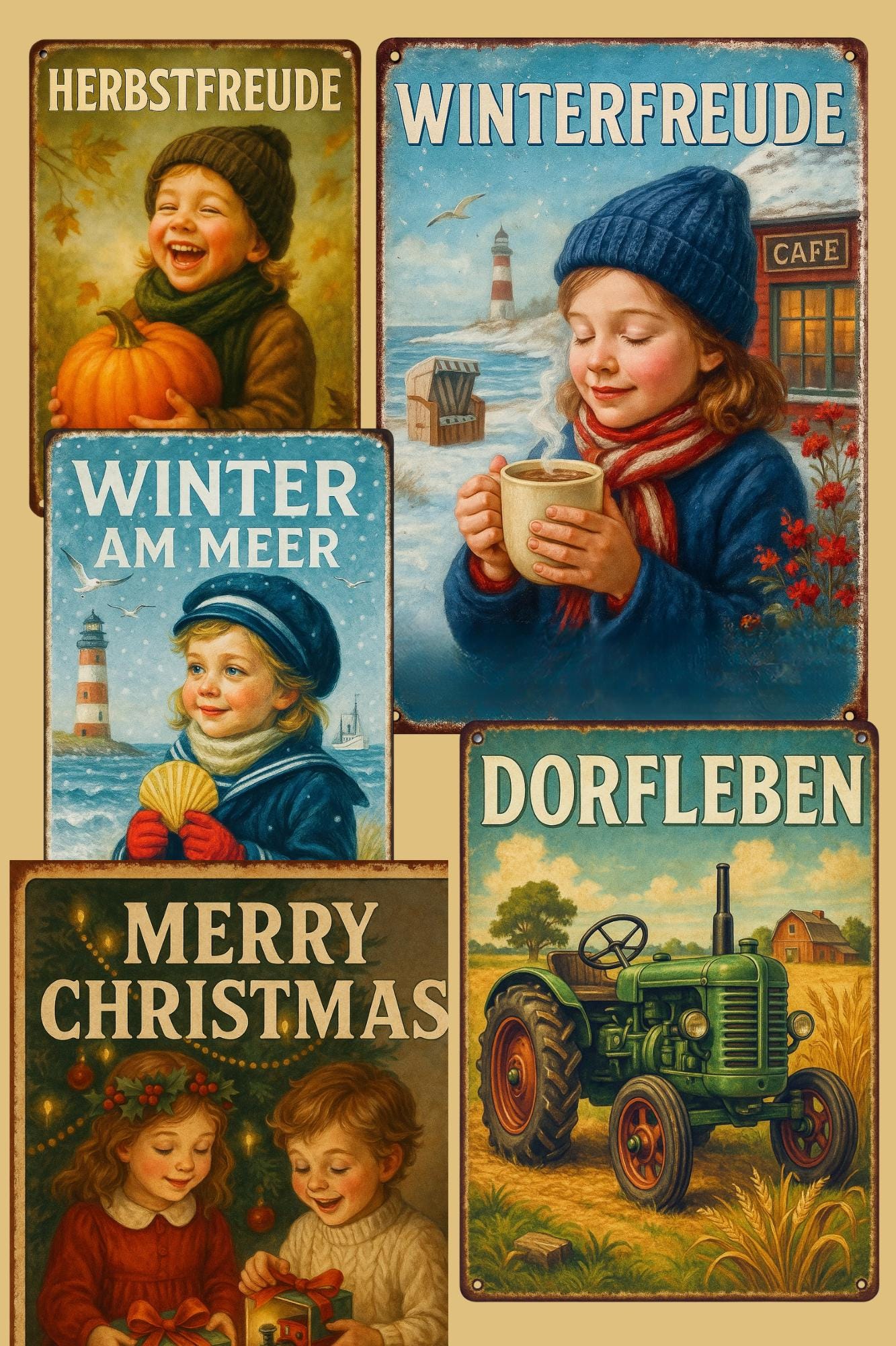 Neue nostalgische Blechschilder für die Herbst - und Winterzeit.