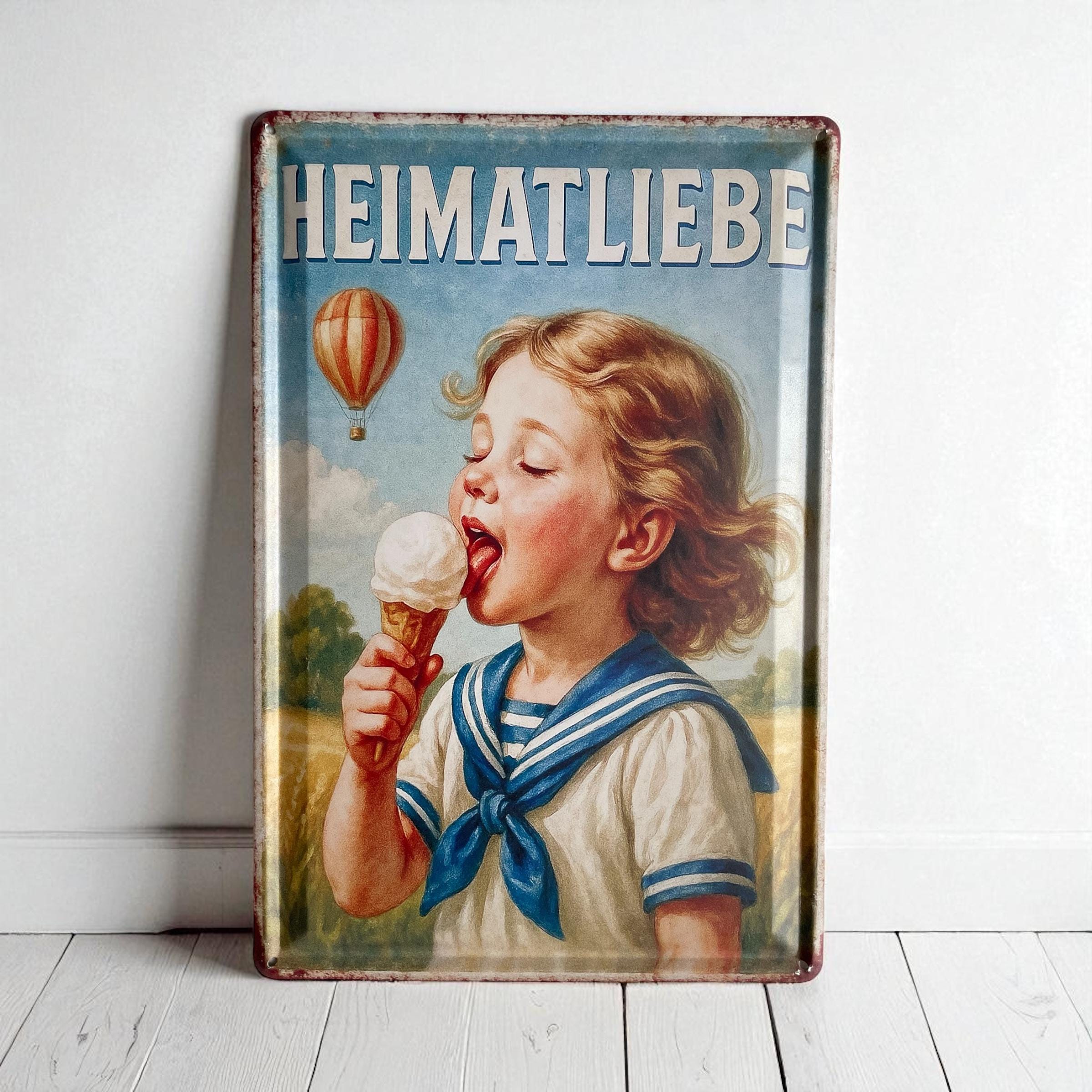 Vintage metal sign "Heimatliebe" | Nostalgic retro metal sign embossed 20 x 30 cm | Wall decoration kitchen living room café