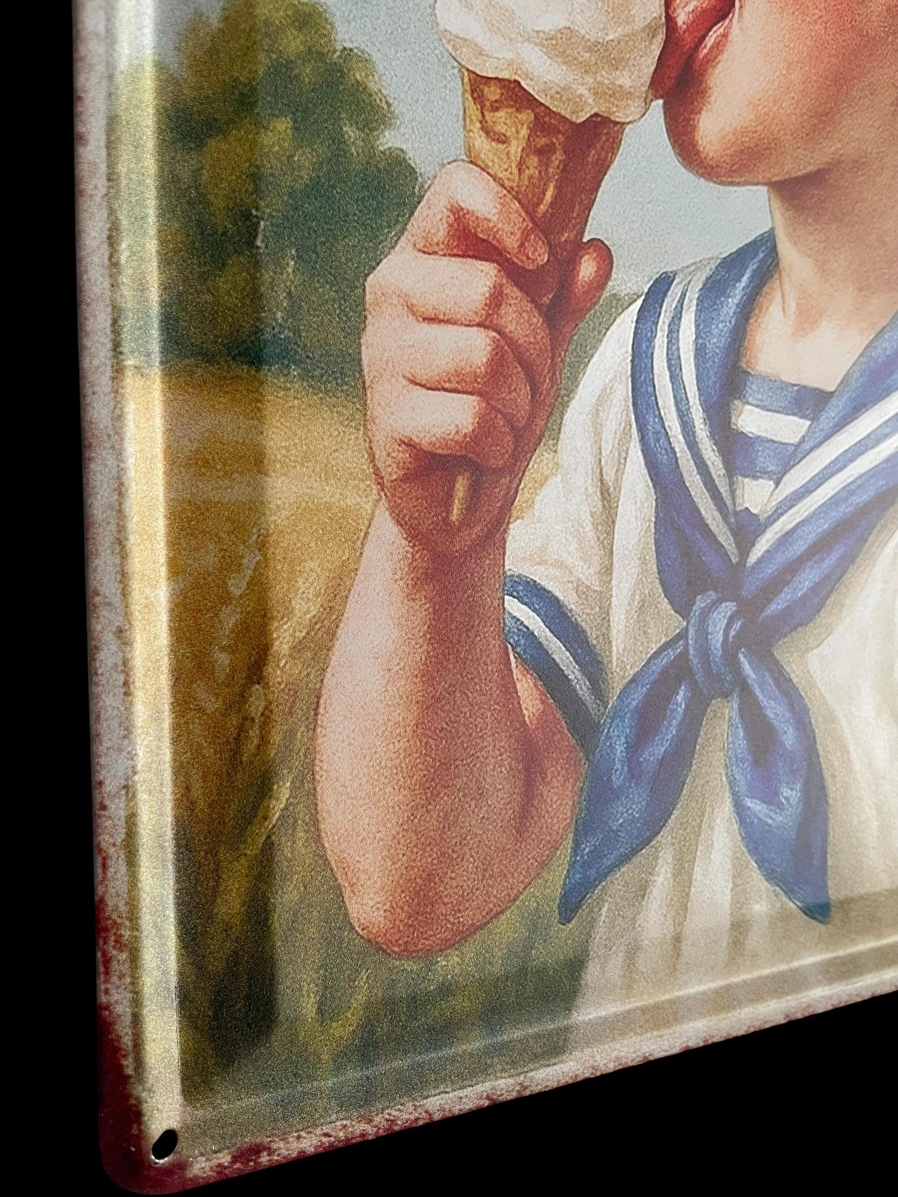 Das Blechschild ist aus robustem Metall gefertigt und mit einer leichten Patina versehen, die ihm einen authentischen Vintage-Charakter verleiht. Ob an der Wand, auf einem Regal oder als Blickfang in der Küche – dieses Schild sorgt garantiert für einen weihnachtlichen Hingucker.