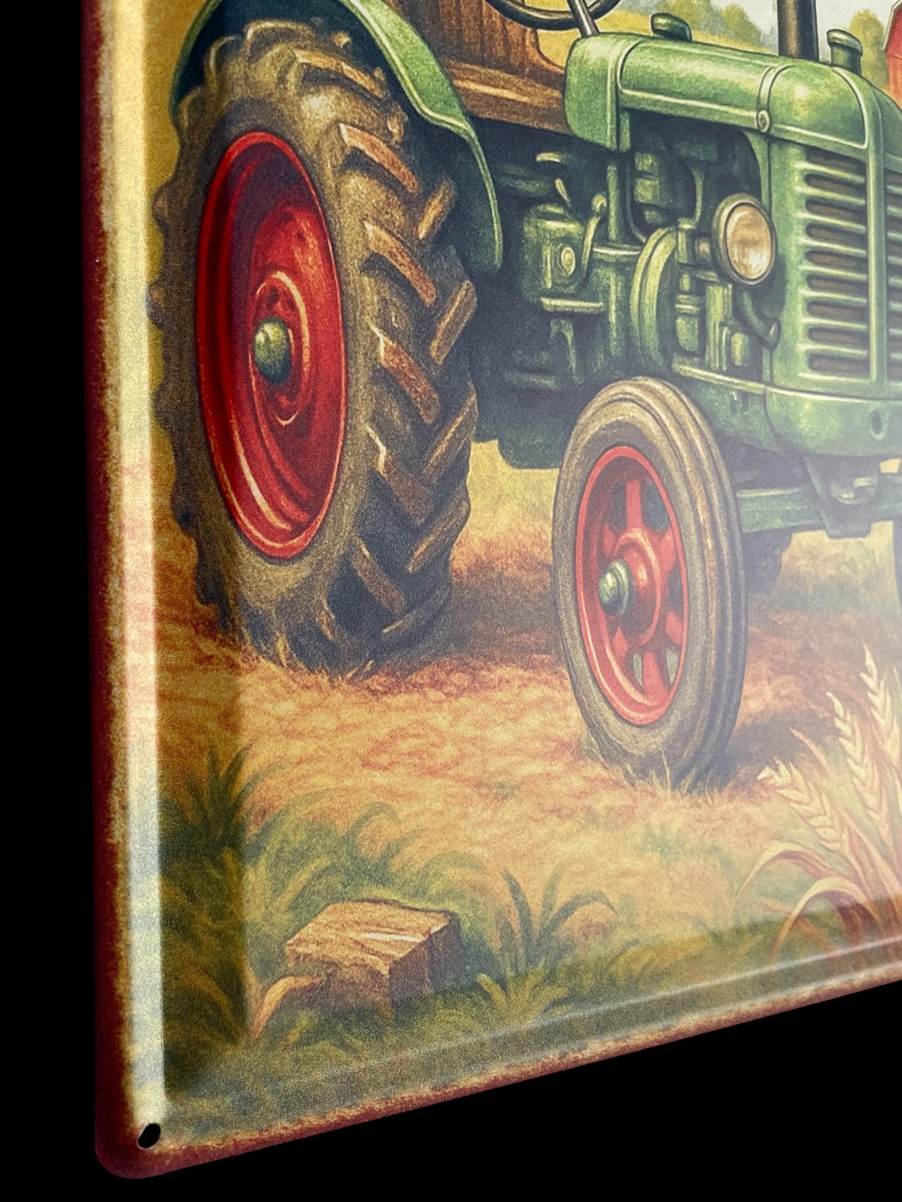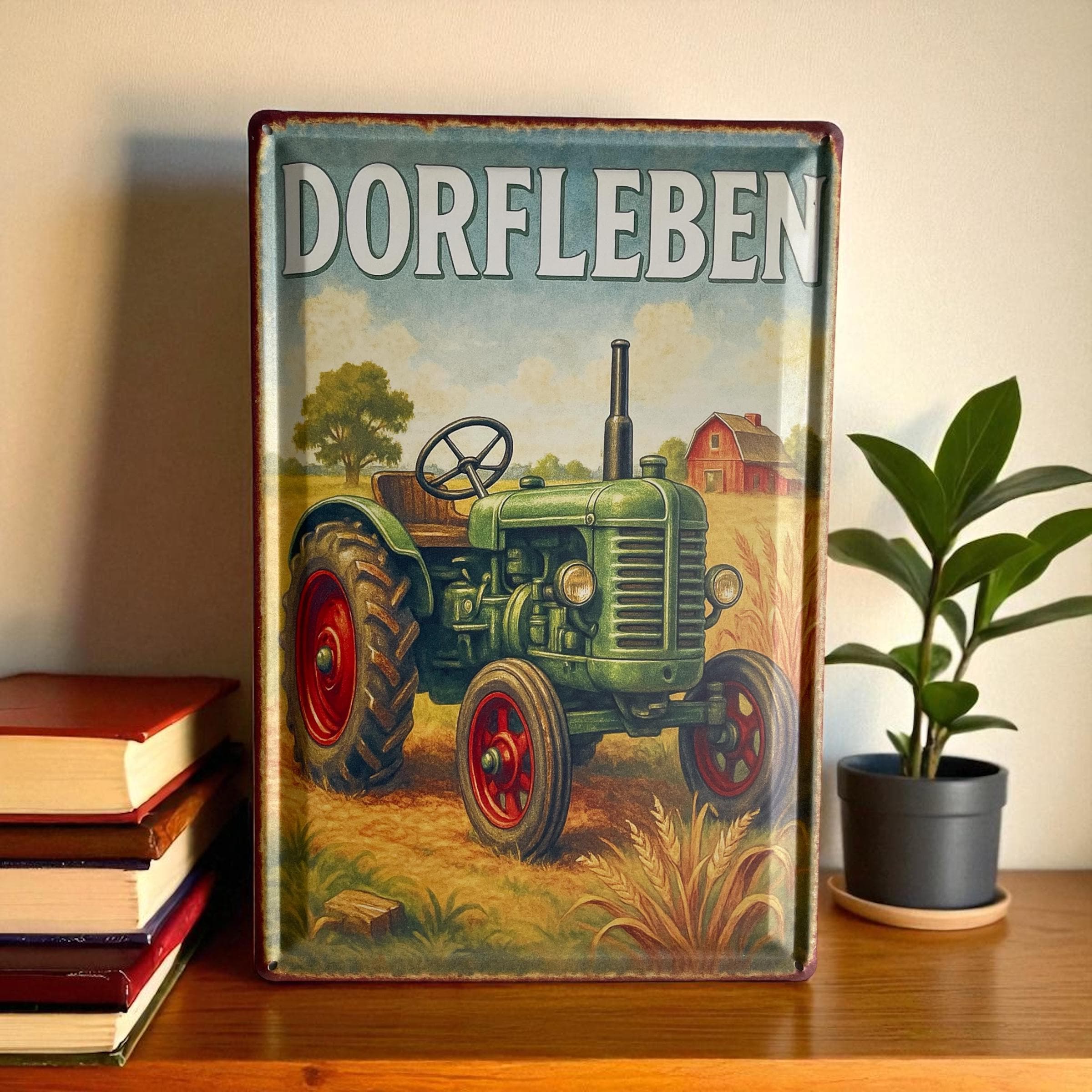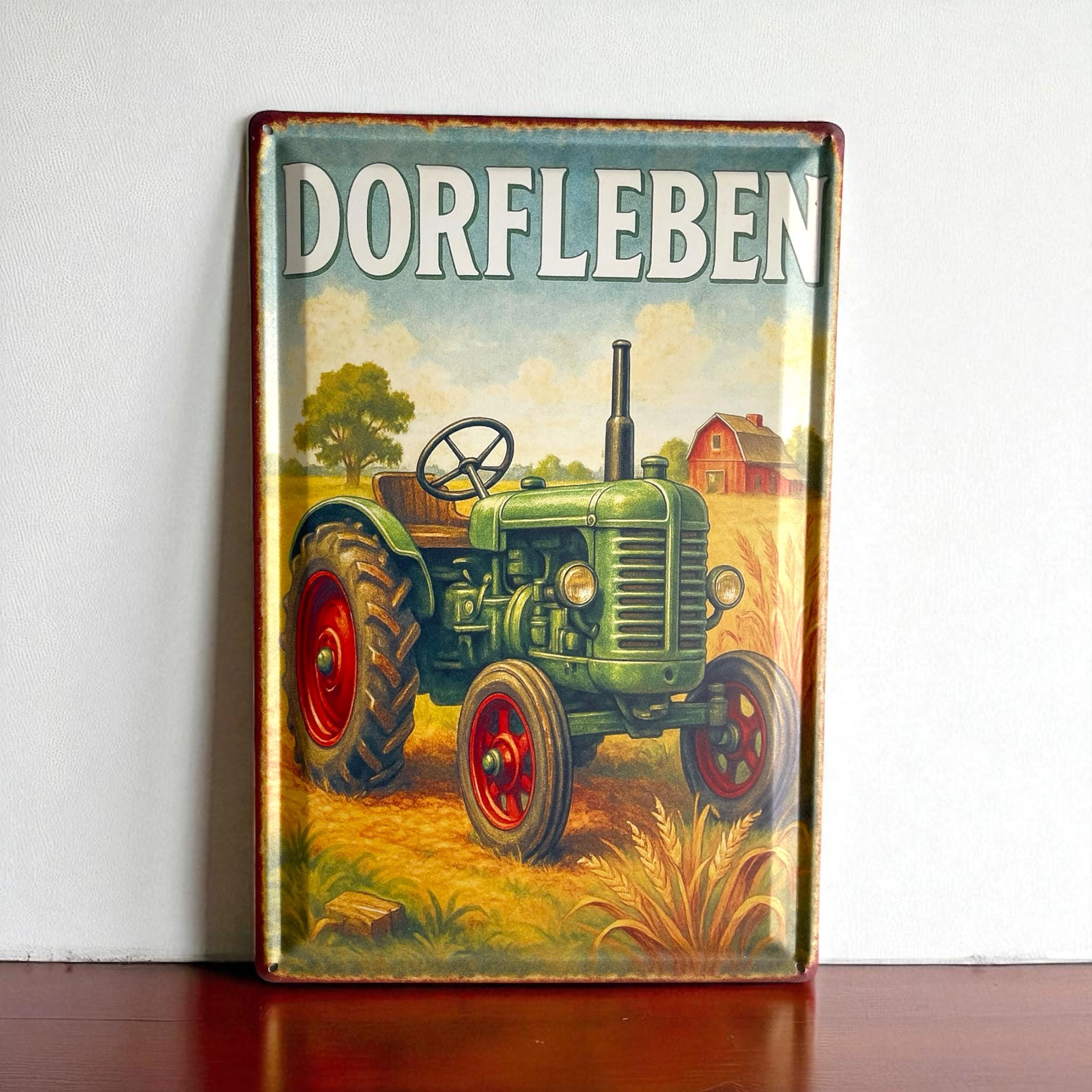 Nostalgic metal sign “Village Life” – embossed retro sign with tractor motif, 20×30 cm