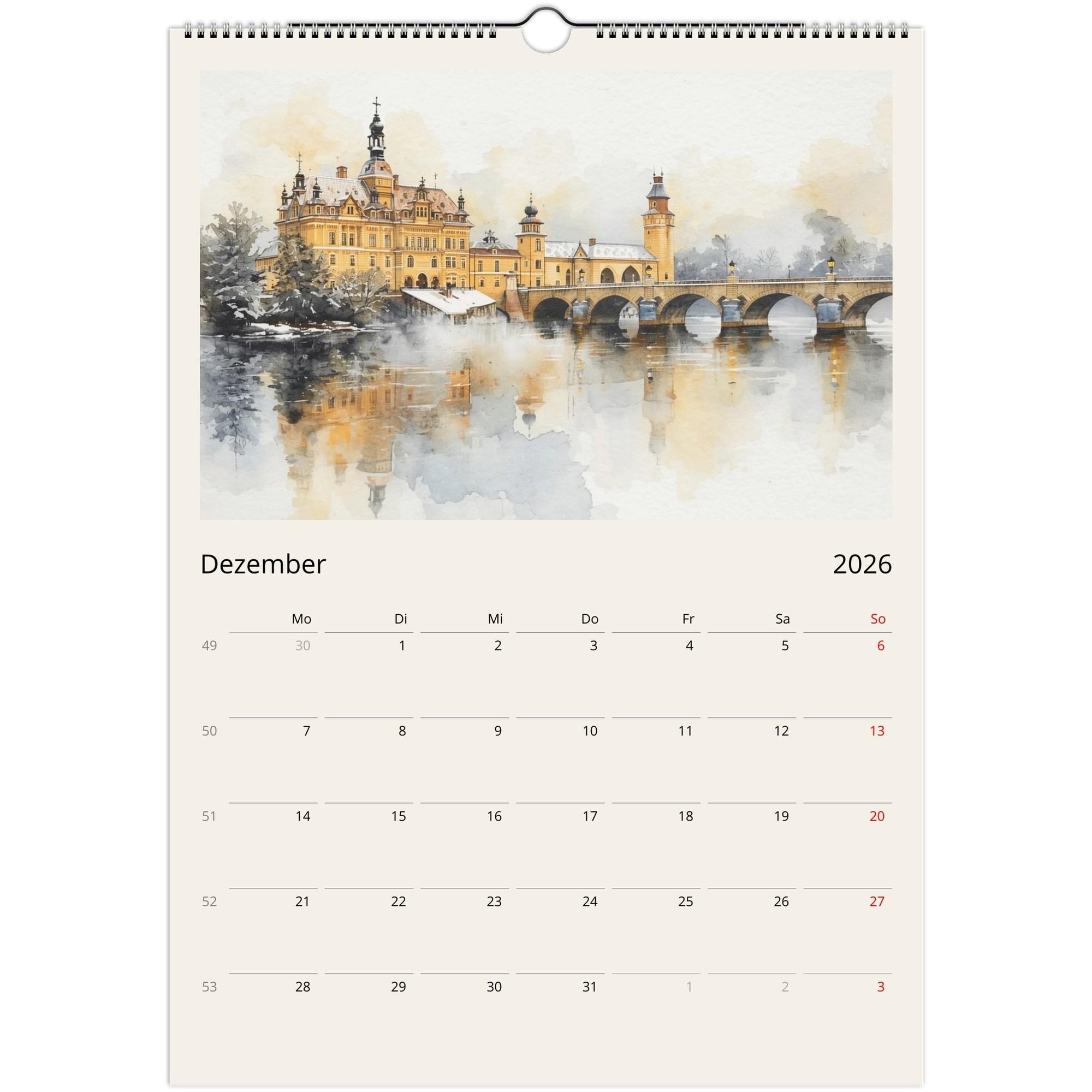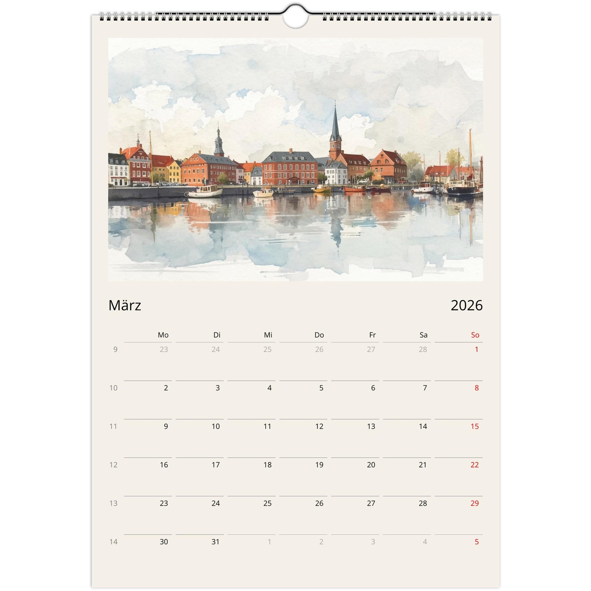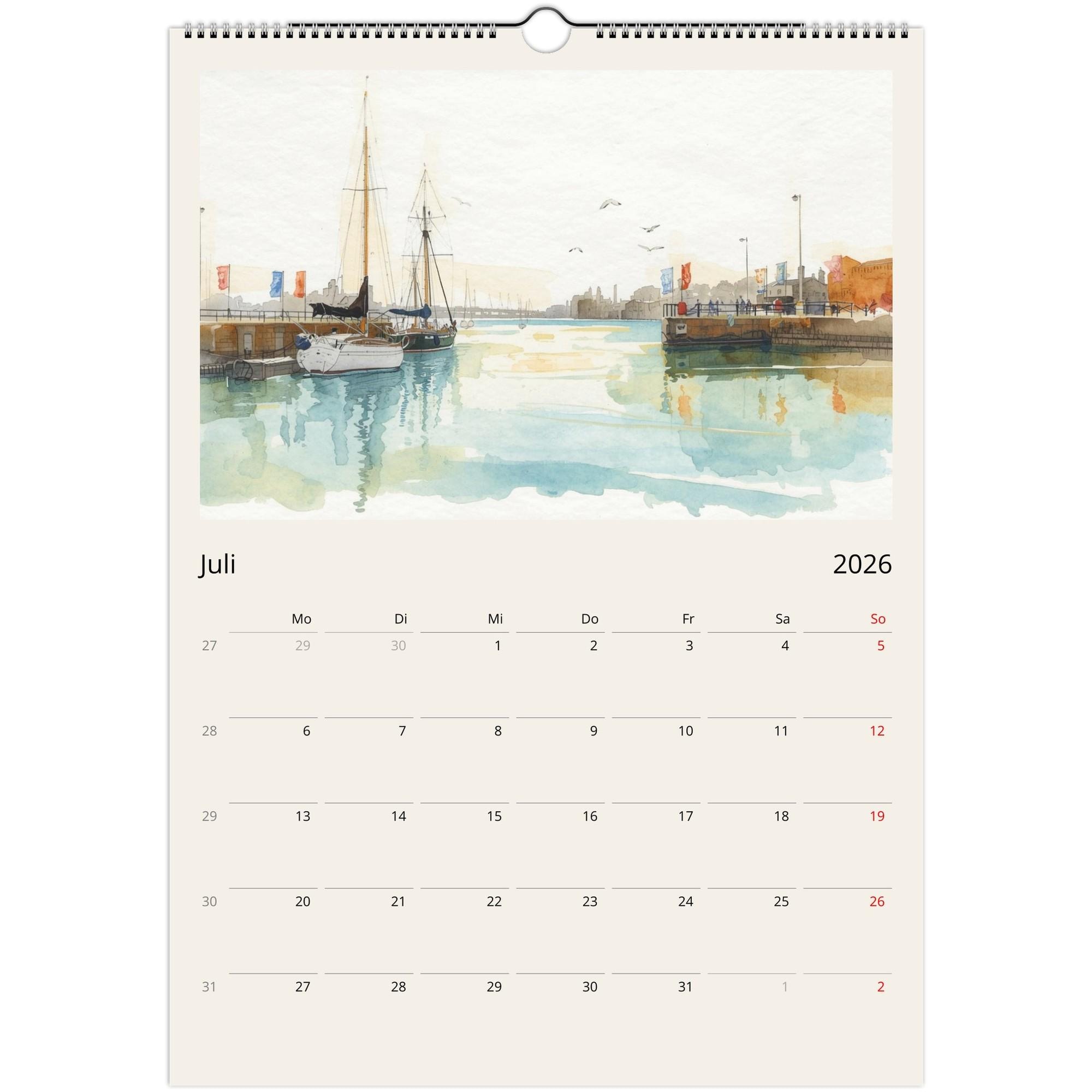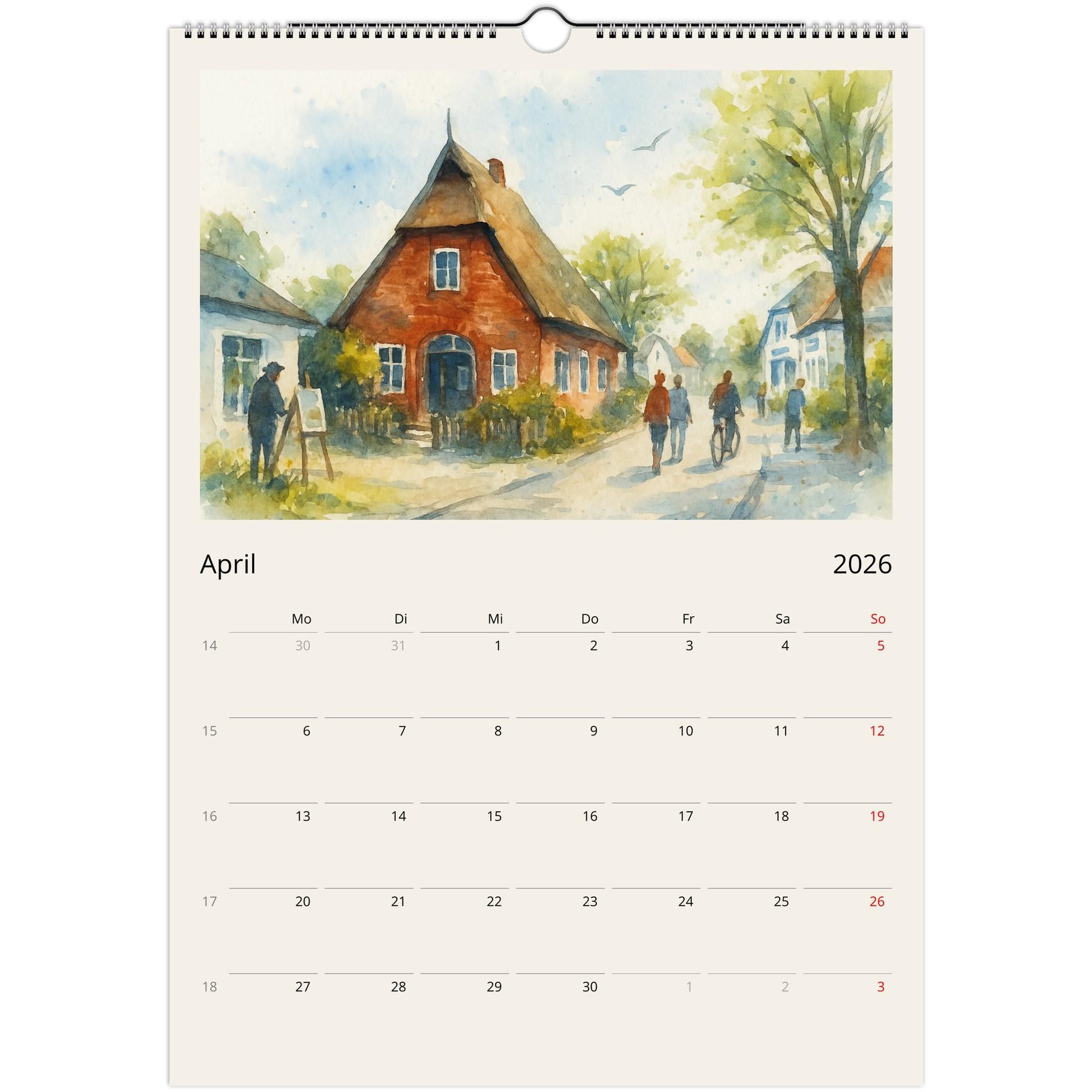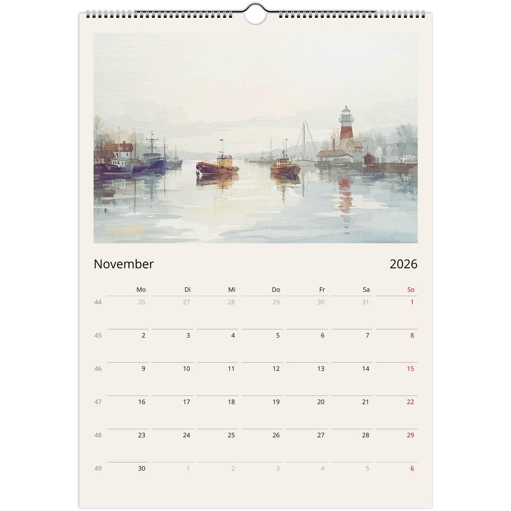 This wall calendar takes you on an atmospheric journey along the Baltic coast – from the quiet winter mornings in Warnemünde to the golden autumn days on the west beach of Zingst. Each monthly page features a lovingly designed watercolor motif, inspired by well-known places in Mecklenburg-Vorpommern: Warnemünde, Stralsund, Wismar, Hiddensee, Rostock, Fischland and many more.
