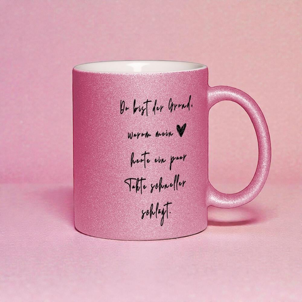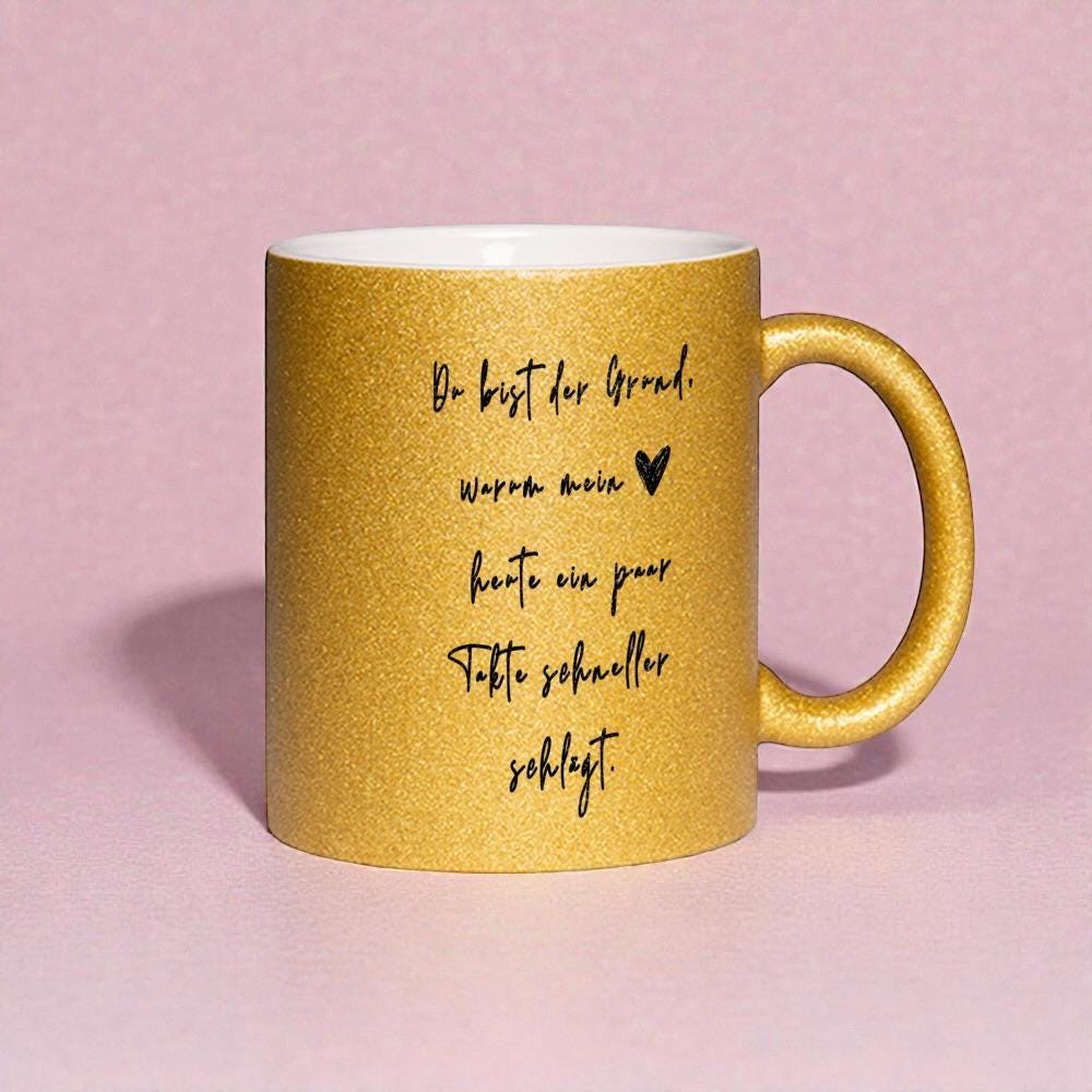 💖 Glitter mug "You are the reason my heart beats a few beats faster" 💖 Are you looking for a thoughtful gift for Valentine's Day, an anniversary, or just because? This glitter mug says in a very special way: I love you. With its shimmering finish and handwritten typography, it's a real eye-catcher – whether for coffee, tea or cocoa.